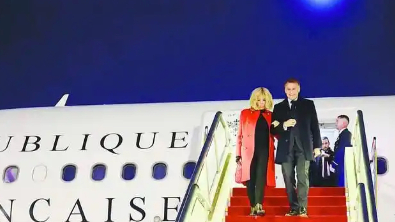 ປະທານາທິບໍດີຝຣັ່ງເດີນທາງມາຮອດນະຄອນຫຼວງປັກກິ່ງ ເພື່ອຢ້ຽມຢາມຈີນທາງລັດຖະກິດຄັ້ງທີ 4
