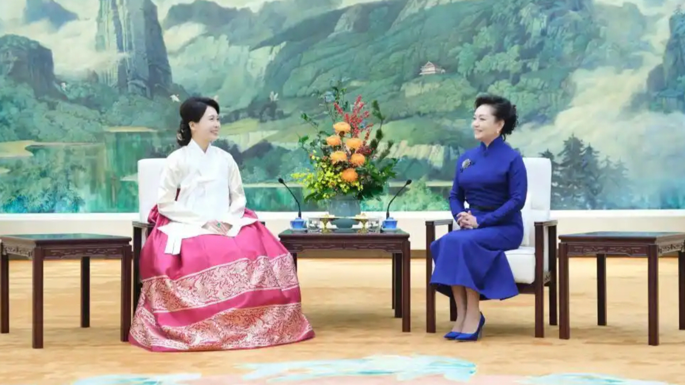 ພັນລະຍາຂອງປະມຸກລັດສອງປະເທດຈີນ-ສ.ເກົາຫຼີຮ່ວມງານລ້ຽງນ້ຳຊາ