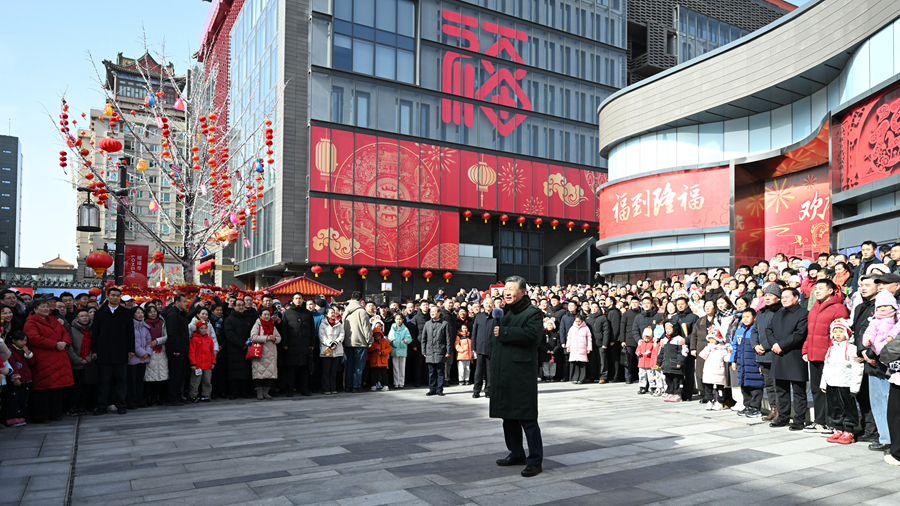 ທ່ານສີຈິ້ນຜິງຢື້ຢາມຖາມຂ່າວປະຊາຊົນຂັ້ນຮາກຖານຢູ່ນະຄອນຫຼວງປັກກິ່ງກ່ອນບຸນກຸດຈີນ